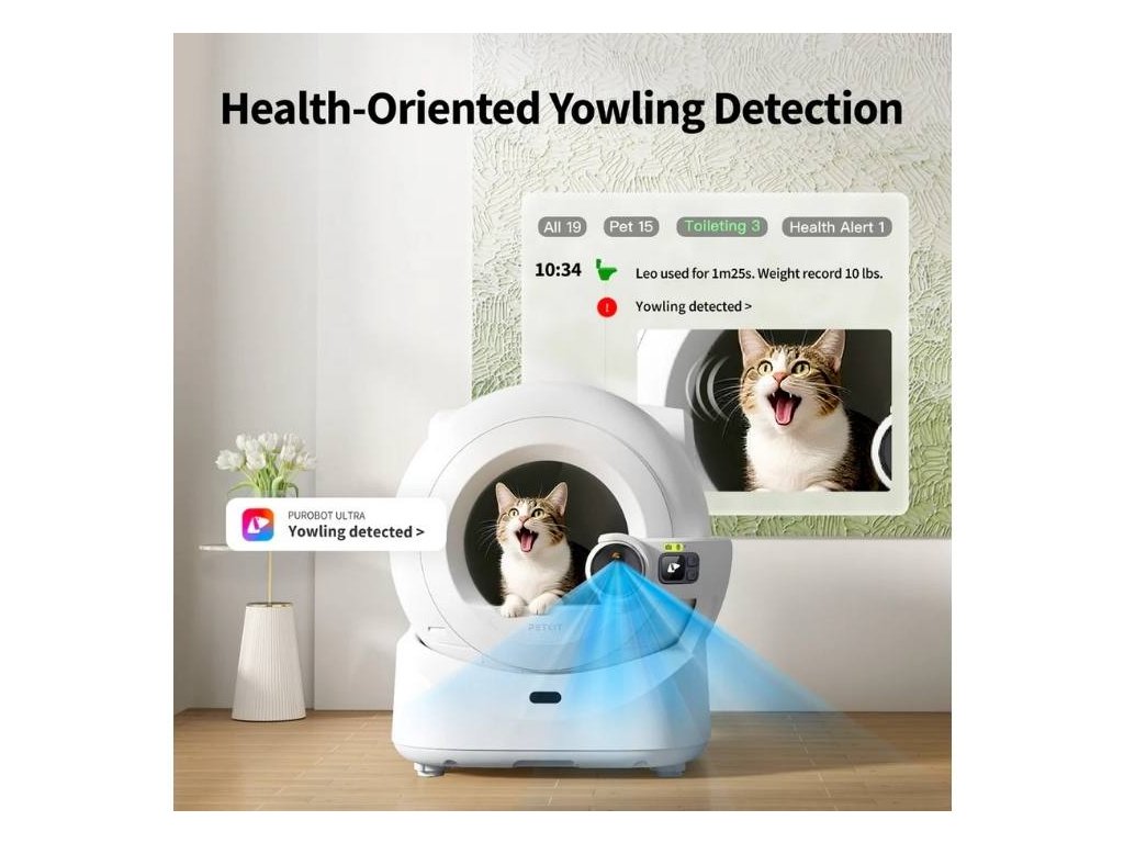 Mňoukání kočky při používání toalety může signalizovat onemocnění močových cest nebo fyzické nepohodlí. Jakmile kamera s umělou inteligencí zaznamená mňoukání během používání, spustí se upozornění prostřednictvím aplikace PETKIT.