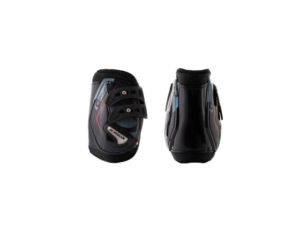 Špičkové, inovativní a velmi elegantní šlachové kamaše od italského výrobce Acavallo. Anatomicky tvarovaný chránič obsahuje tlumící vrstvu ze speciálního gelu a disponuje velmi trvanlivým, patentovaným zapínáním na přezku bez suchého zipu. Vnější vrstva z pevného, lehkého a flexibilního polyuretanu zajišťuje vynikající ochranu při nárazu. Speciální mřížka na vnější straně v oblasti spěnkového kloubu se stará o výbornou prodyšnost. Chrániče působí atraktivním designem a velmi snadno se udržují.