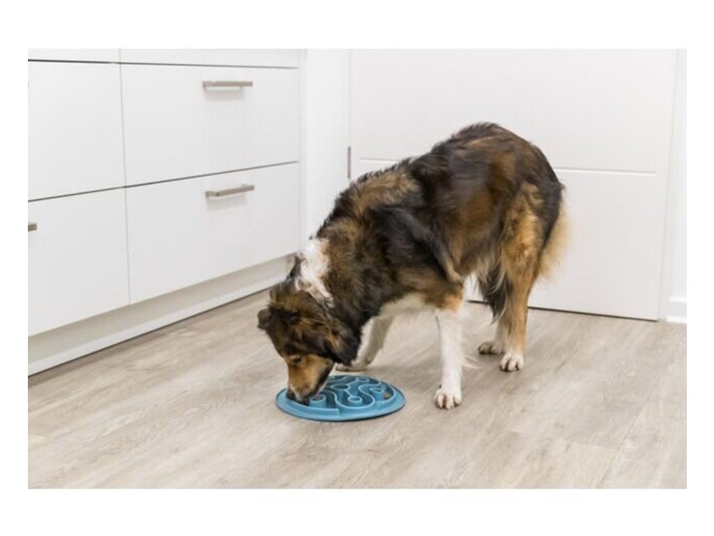 Talíř silikonový TRIXIE Slow Feed Triangl k pomalému krmení modrý 28cm