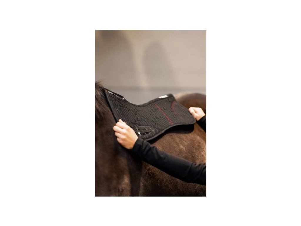 Tlumící dečka pod sedlo HORZE Infra-Red má anatomicky tvarovanou zadní linii a je vyrobena z infračervené tkaniny, která odráží tělesné teplo koně a proniká hluboko do tkání.