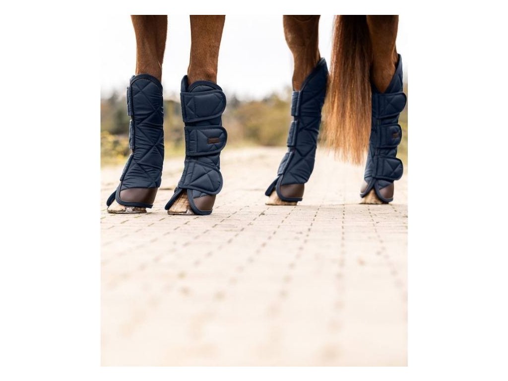 Anatomicky tvarované transportní kamaše poskytují maximální pohodlí a bezpečí při přepravě koně. Jsou vybaveny třemi pevnými suchými zipy, které zaručují optimální držení na noze. Vnitřní část je vyplněna tlumicí pěnou a podšitá jemnou imitací králičí kožešiny, která je příjemná na dotek a zároveň chrání nohu před oděrkami. Oblast spěnky je zesílena syntetickou kůží pro vyšší odolnost proti opotřebení.
