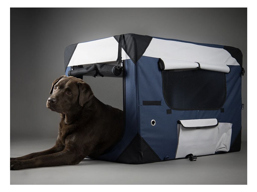 Transportní klec FLAMINGO Geronimo nylonová modrá (S) 42x60x42cm (do max 11kg)