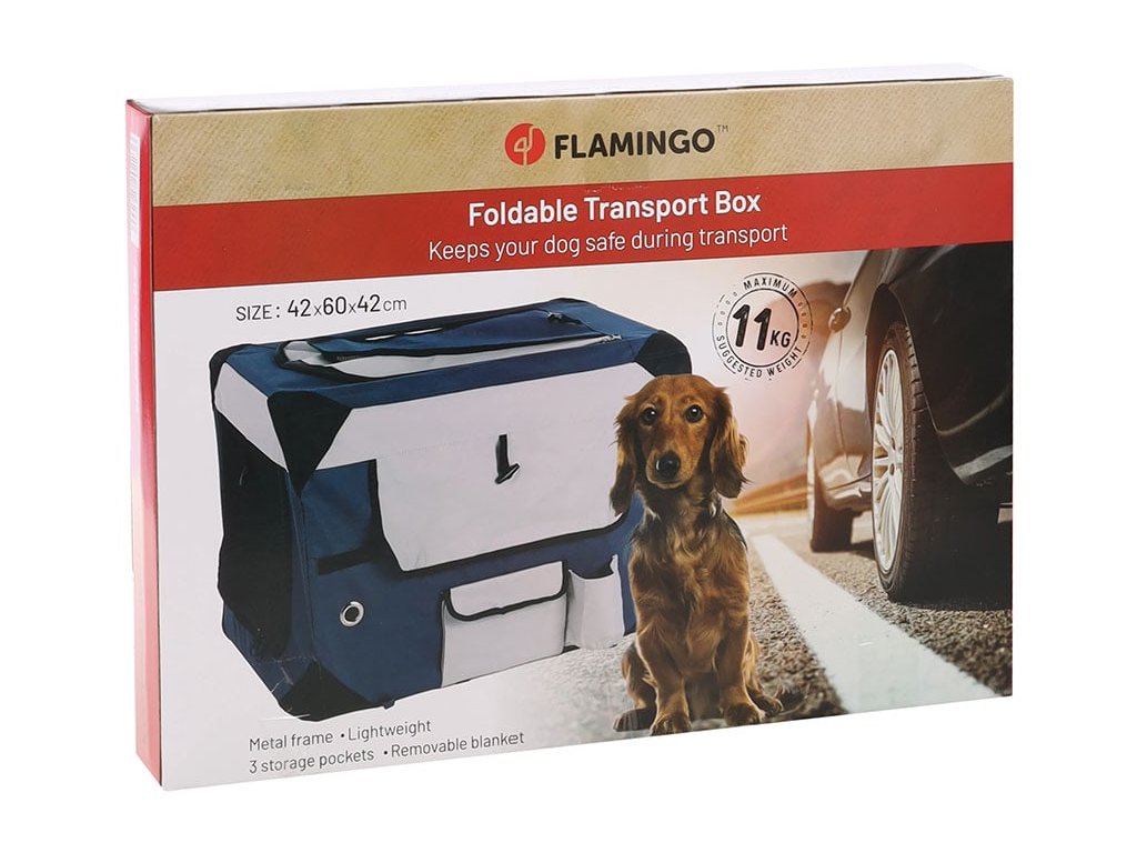 Transportní klec FLAMINGO Geronimo nylonová modrá (S) 42x60x42cm (do max 11kg) (DOPRODEJ)
