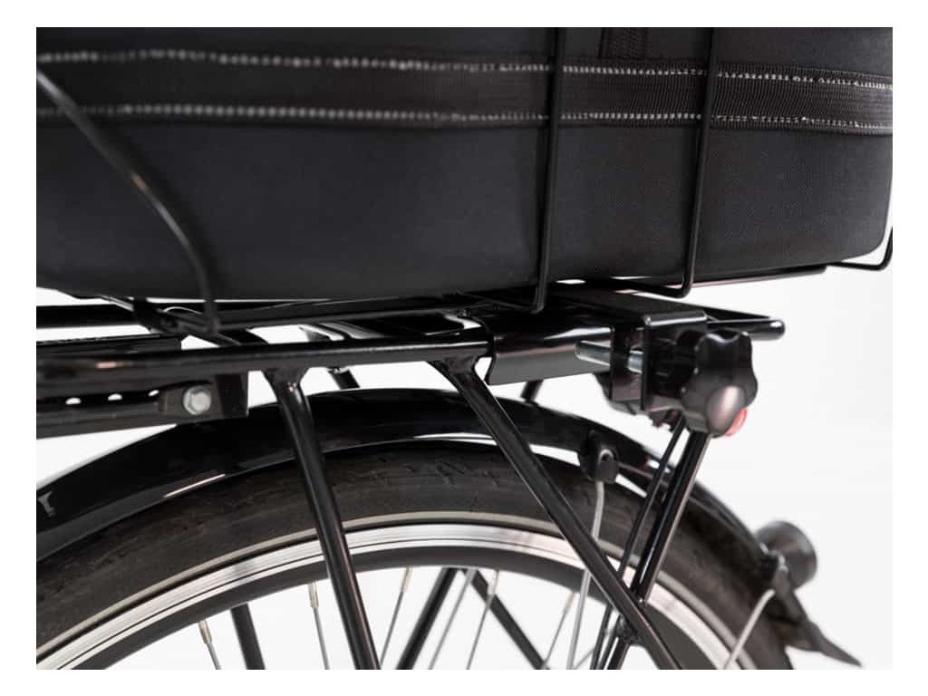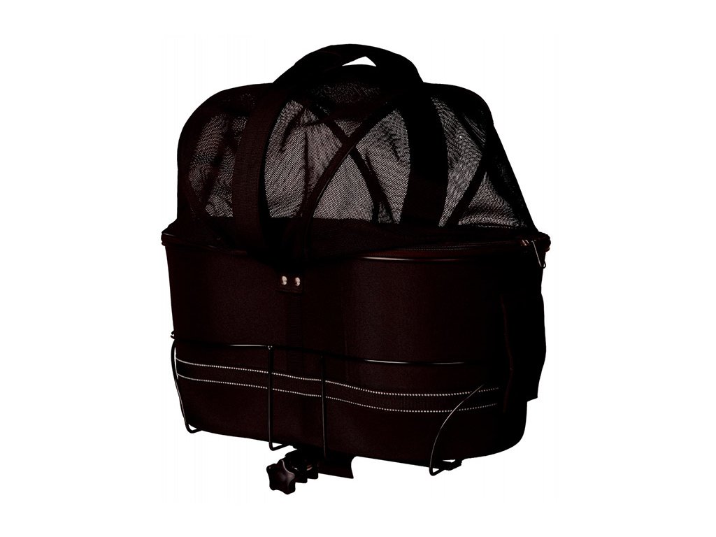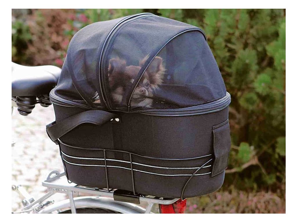 - pevný kovový rám pro bezpečný převoz zvířete na nosiči kola (šířka: 11,8–16 cm)