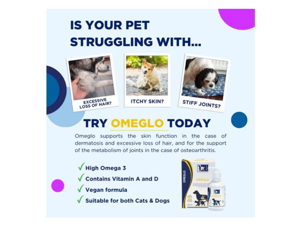 NÁVOD K POUŽITÍ: OMEGLO dobře promíchejte s krmivem. Krmte každého psa a kočku zvlášť. Počínaje krmením po dobu 2–3 měsíců.