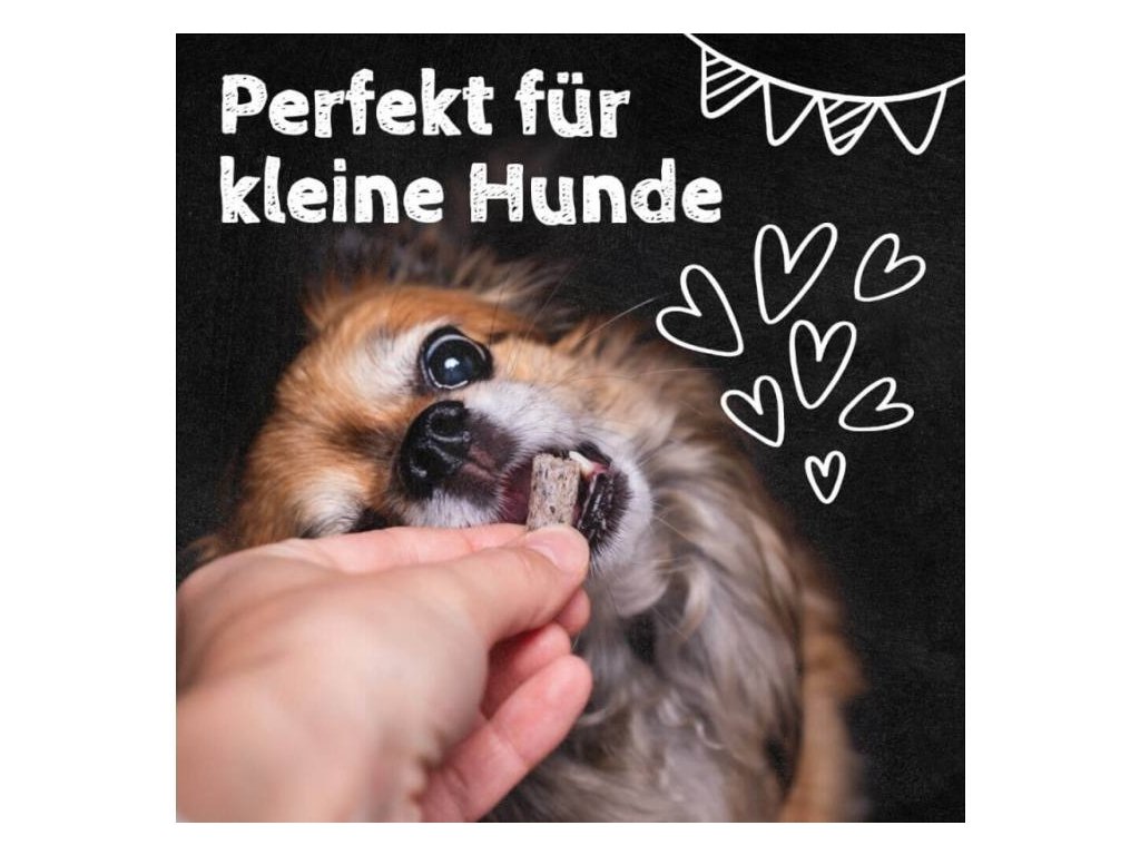 KRMNÝ NÁVOD: Denní péče o zuby: 5 kousků denně pro psy do 3 kg živé hmotnosti a 10 ks pro psy o vyšší hmotnosti. Určeno speciálně pro malá plemena psů.