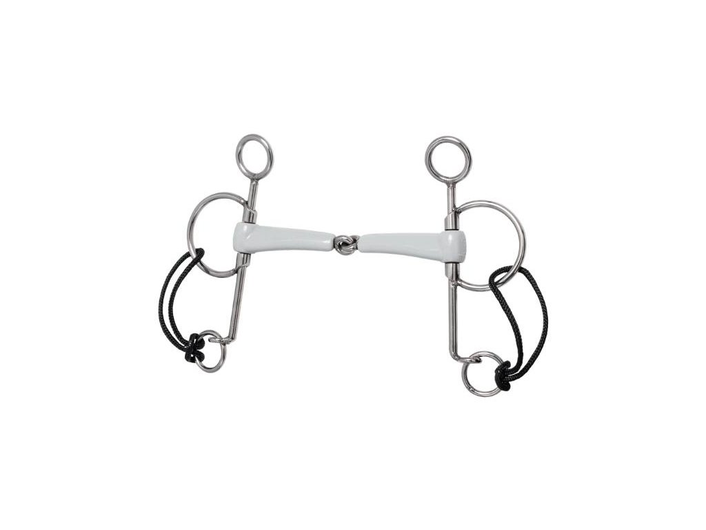 Jednou lomené plastové udítko je mimořádně štíhlé, a proto velmi pohodlné i pro koně s menší hubou. Široké styčné plochy a nízký profil zajišťují komfortní usazení, zatímco hladký povrch plastu dobře klouže v hubě i u koní s menší produkcí slin. Udítko spočívá na jazyku a pyscích širokou kontaktní plochou a svým plynulým tvarem přechází do jemně zakřiveného olivového zakončení. Klouby i střední část jsou precizně zpracovány a přizpůsobeny nízkému profilu udítka. Díky mosazným pouzdrům kroužky udidla hladce kloužou, což zaručuje přesné vedení otěží a jemnou komunikaci mezi koněm a jezdcem. Pelham je dodáván s háčky na podbradní řetízek, bez samotného řetízku.