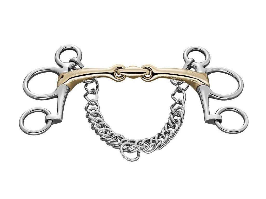 - toto udidlo působí na dolní čelist a jazyk a je navrženo pro použití se dvěma sadami otěží