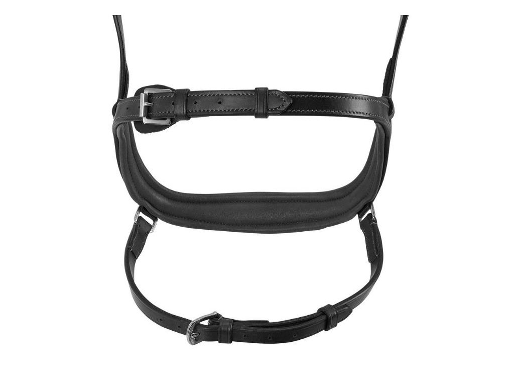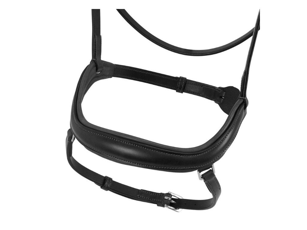Díky volnému prostoru není vyvíjen takový tlak na týl, rovnoměrněji se rozloží a zajistí koni komfort. Spoje jsou vyrobeny z nerezové oceli.