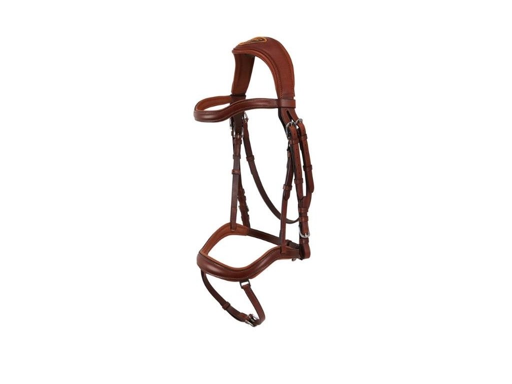 Vysoce kvalitní uzdečka z velmi měkké pravé italské hovězí kůže s anglickým nánosníkem. Má ergonomický a anatomicky tvarovaný nátylník, nánosník i čelenku.