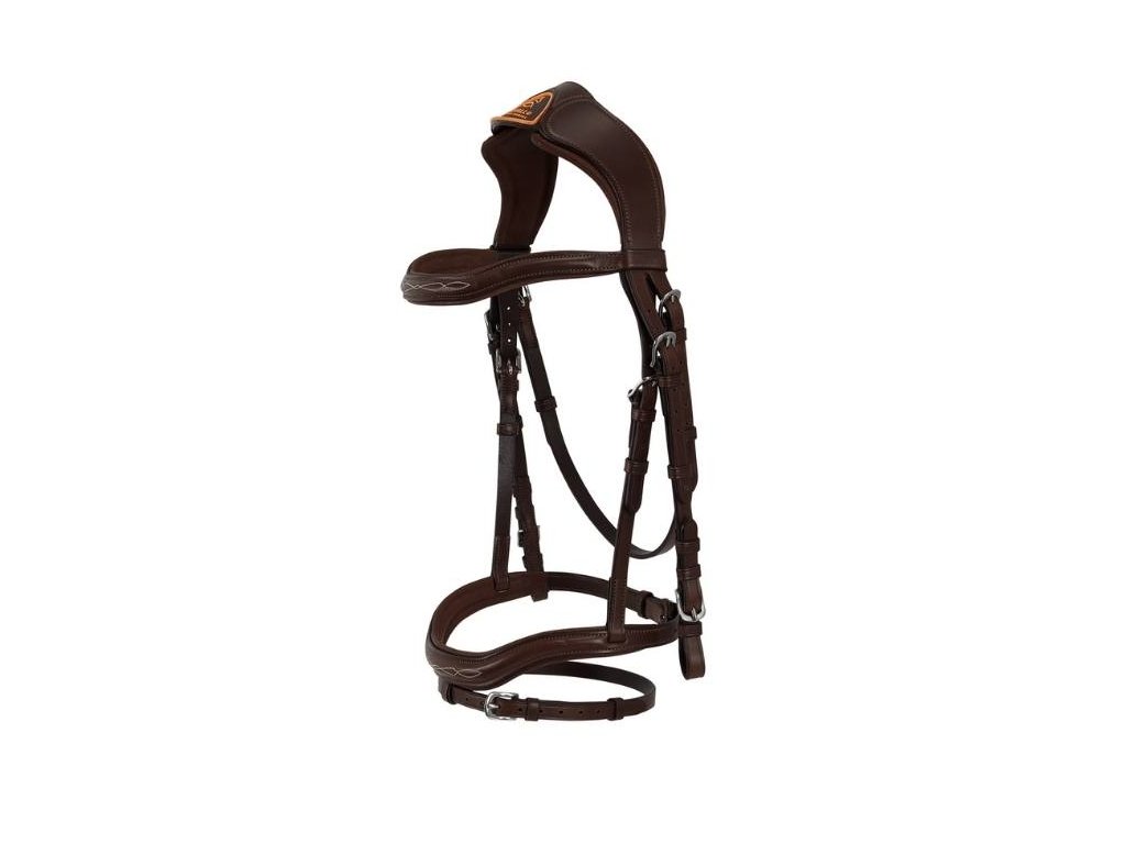 Vysoce kvalitní uzdečka z velmi měkké pravé italské hovězí kůže s anglickým kombinovaným nánosníkem.