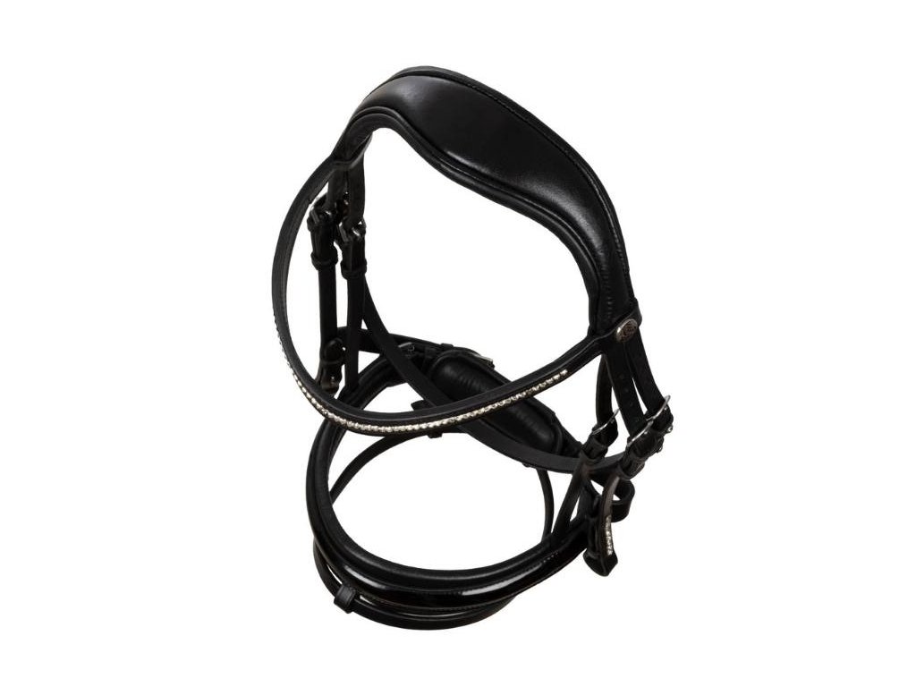 Tvarovaný anatomický nátylník je navržen tak, aby snižoval tlak na lebeční oblast koně a nezasahoval do citlivé oblasti uší. Čelenka a nánosník jsou polstrované latexem. Čelenka a lícnice jsou zdobeny kamínky, což uzdečce dodává osobitý design.