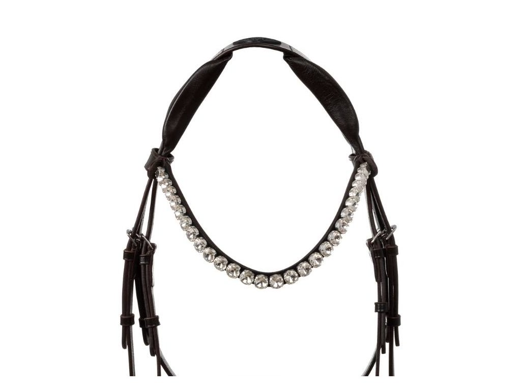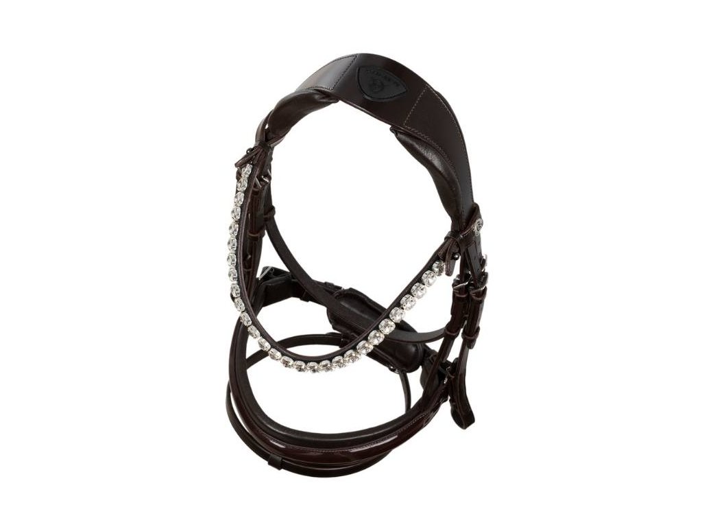 Je vyrobená z nejjemnější italské telecí kůže. Tvarovaný anatomický nátylník je navržen tak, aby snižoval tlak na lebku koně a zajišťoval vynikající pohodlí, aniž by zasahoval do jemných uší koně. Čelenka a nánosník jsou polstrované latexem a mají elegantní bílé lemování, které uzdečce dodává rafinovaný a osobitý design. Robustní přezky z nerezové oceli zajišťují odolnost a bezpečné zapínání. Uzdečka je kombinací stylu, funkčnosti a řemeslného zpracování, která uspokojí i ty nejnáročnější jezdce.