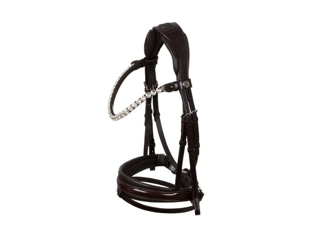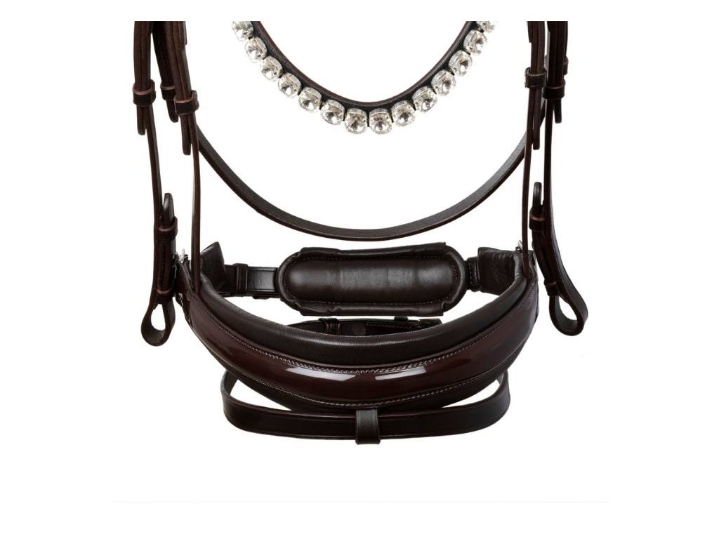 Je vyrobená z nejjemnější italské telecí kůže. Tvarovaný anatomický nátylník je navržen tak, aby snižoval tlak na lebku koně a zajišťoval vynikající pohodlí, aniž by zasahoval do jemných uší koně. Čelenka a nánosník jsou polstrované latexem a mají elegantní bílé lemování, které uzdečce dodává rafinovaný a osobitý design. Robustní přezky z nerezové oceli zajišťují odolnost a bezpečné zapínání. Uzdečka je kombinací stylu, funkčnosti a řemeslného zpracování, která uspokojí i ty nejnáročnější jezdce.