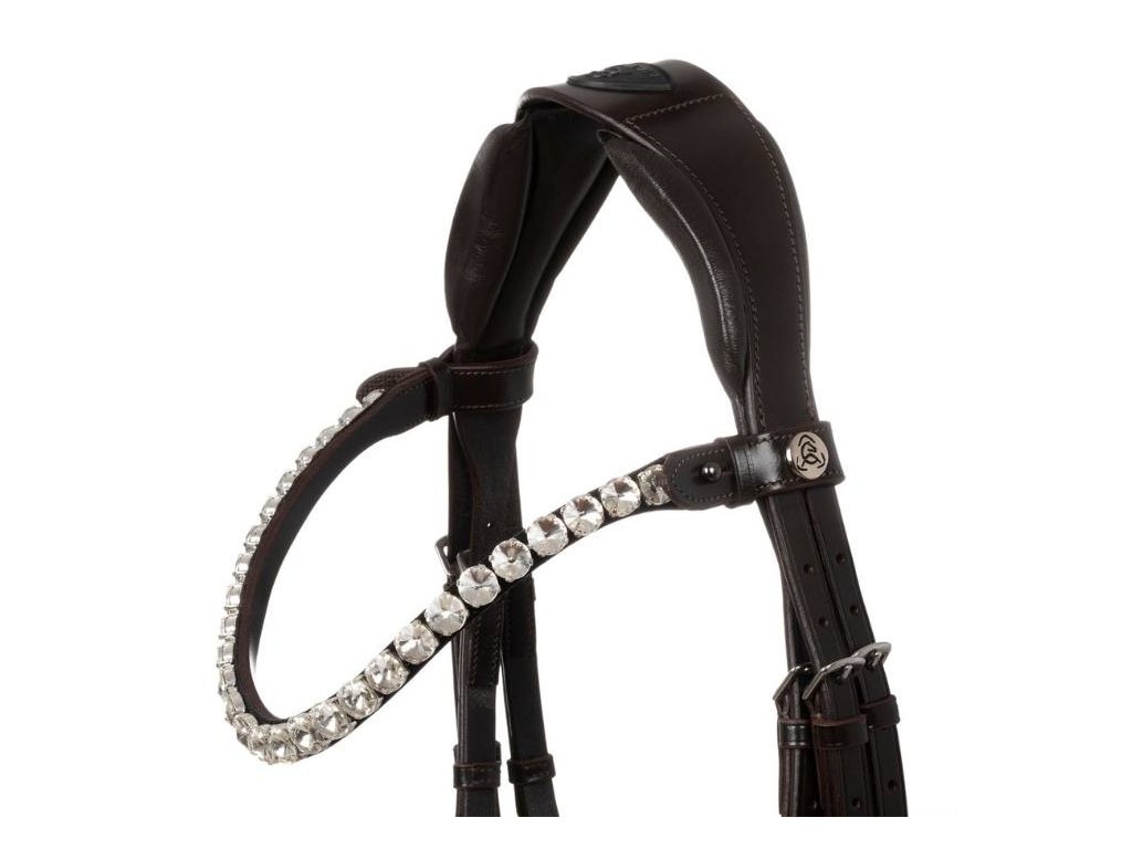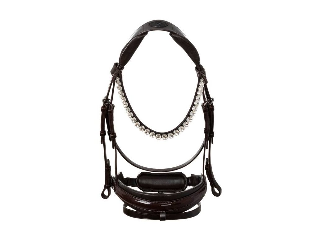 Je vyrobená z nejjemnější italské telecí kůže. Tvarovaný anatomický nátylník je navržen tak, aby snižoval tlak na lebku koně a zajišťoval vynikající pohodlí, aniž by zasahoval do jemných uší koně. Čelenka a nánosník jsou polstrované latexem a mají elegantní bílé lemování, které uzdečce dodává rafinovaný a osobitý design. Robustní přezky z nerezové oceli zajišťují odolnost a bezpečné zapínání. Uzdečka je kombinací stylu, funkčnosti a řemeslného zpracování, která uspokojí i ty nejnáročnější jezdce.