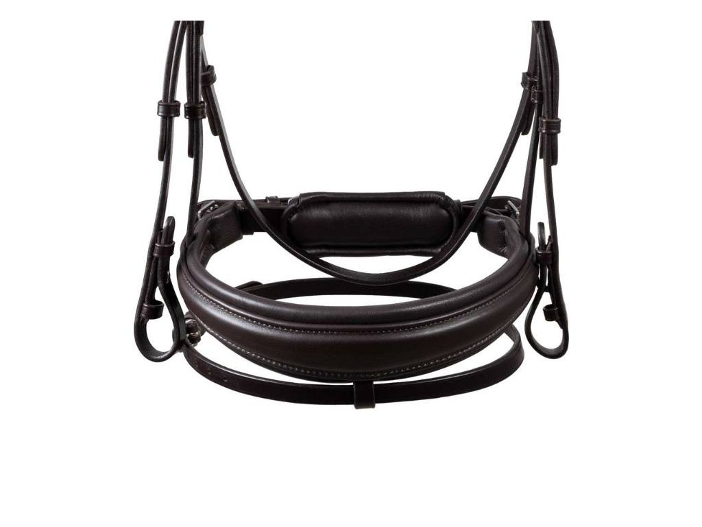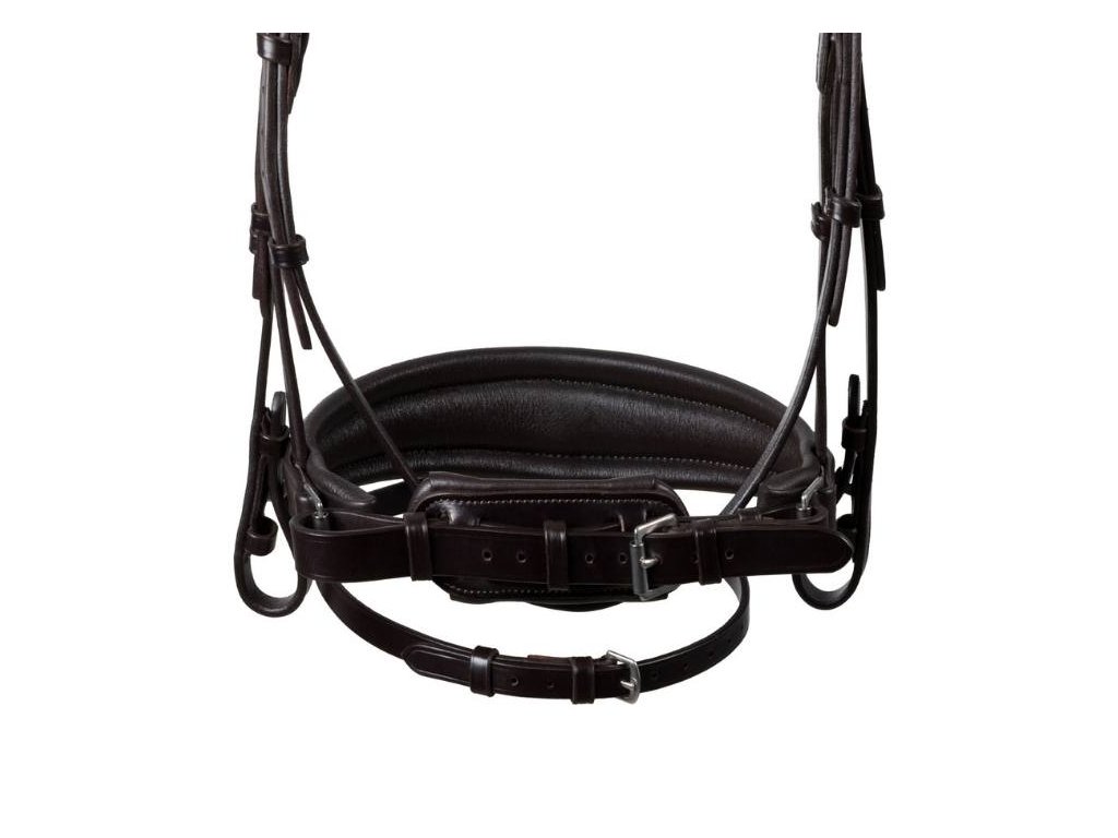 Díky volnému prostoru není vyvíjen takový tlak na týl, rovnoměrněji se rozloží a zajistí koni komfort. Spoje jsou vyrobeny z nerezové oceli.