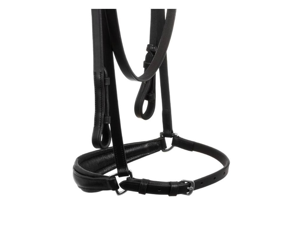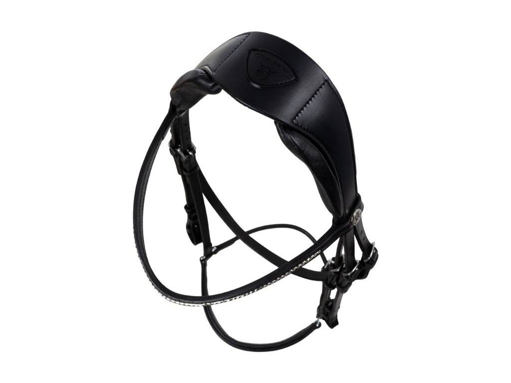 Pružný a anatomický nátylník zmírňuje tlak v oblasti lebky koně a zajišťuje pohodlné a neomezené nošení. Vybavena měkkým hannoverským nánosníkem. Tvarovaná čelenka s kamínky nabízí elegantní design.