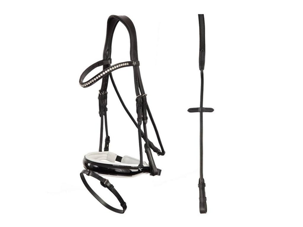 Uzdečka ANKY ATH16003 se švédským nánosníkem černá/bílá FULL