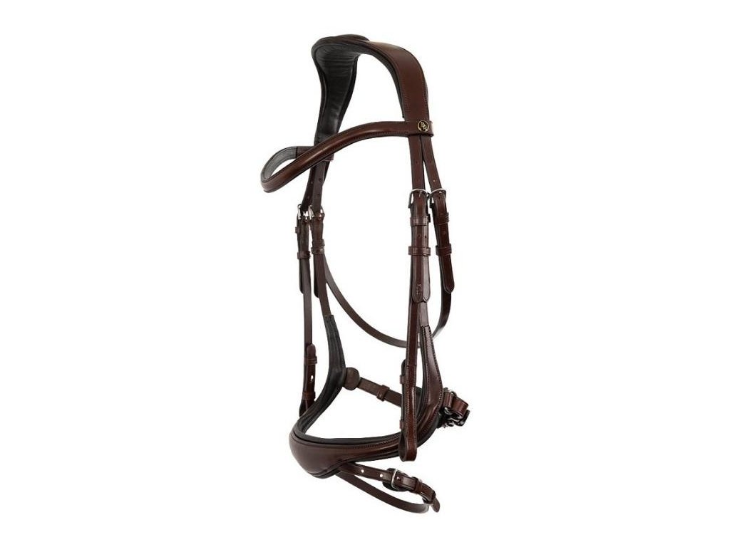 Extra široký a měkký nátylník pro komfort koně. Nánosník je měkce podložený až do oblasti lícních kostí. Všechny nerez kroužky mají kožené krytky. Uzdečka perfektně sedí. Zapínání lícnic na skryté háčky.