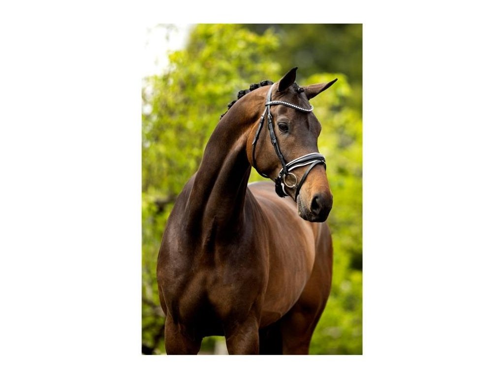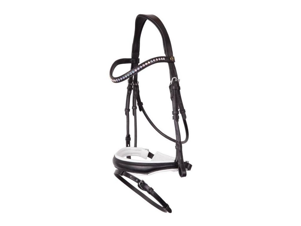 Uzdečka BR Southam vyrobená z kulaté kůže. Pravé Swarovski krystaly na čelence. Anatomicky tvarovaný nátylník.