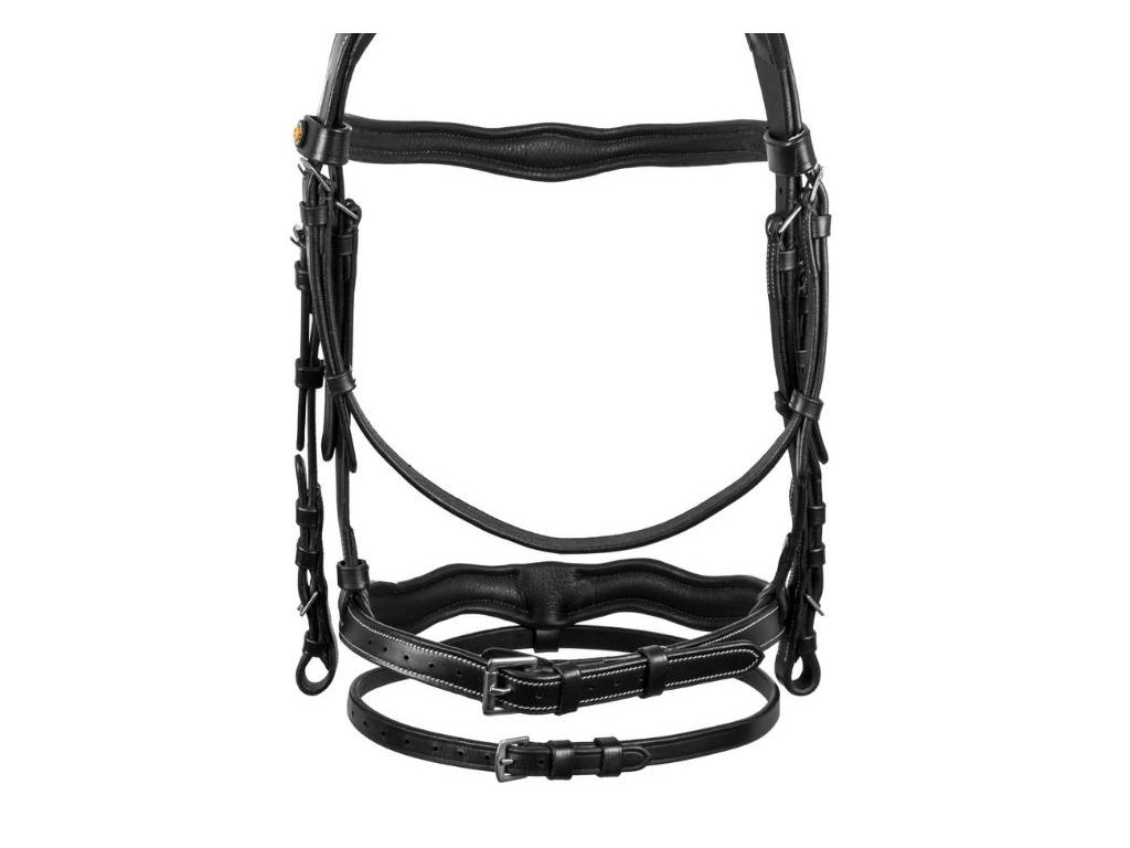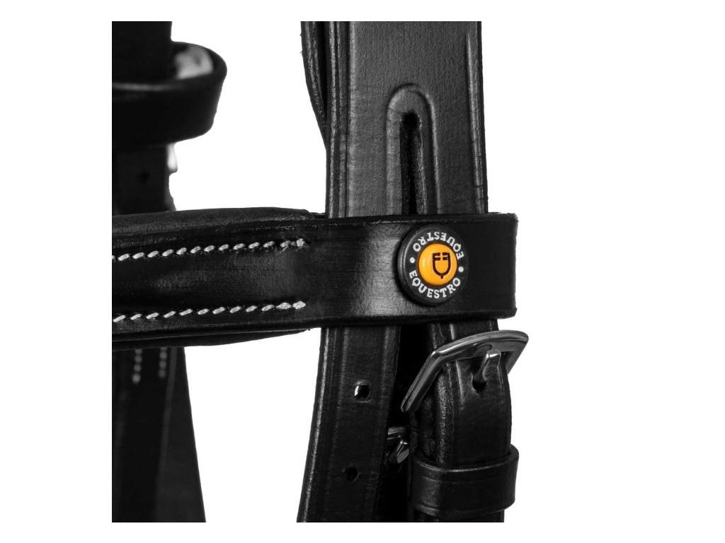 Podhrdelník lze nastavit na obou stranách. Zdobena logem Equestro na čelence a nánosníku.