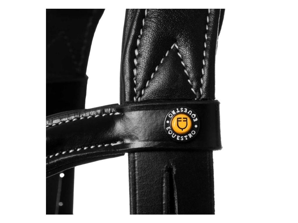 Nátylník, čelenka a nánosník jsou lehce polstrované. Vybavena přezkami z nerezové oceli. Zdobí ji kontrastní prošívání a žluté logo Equestro na čelence.