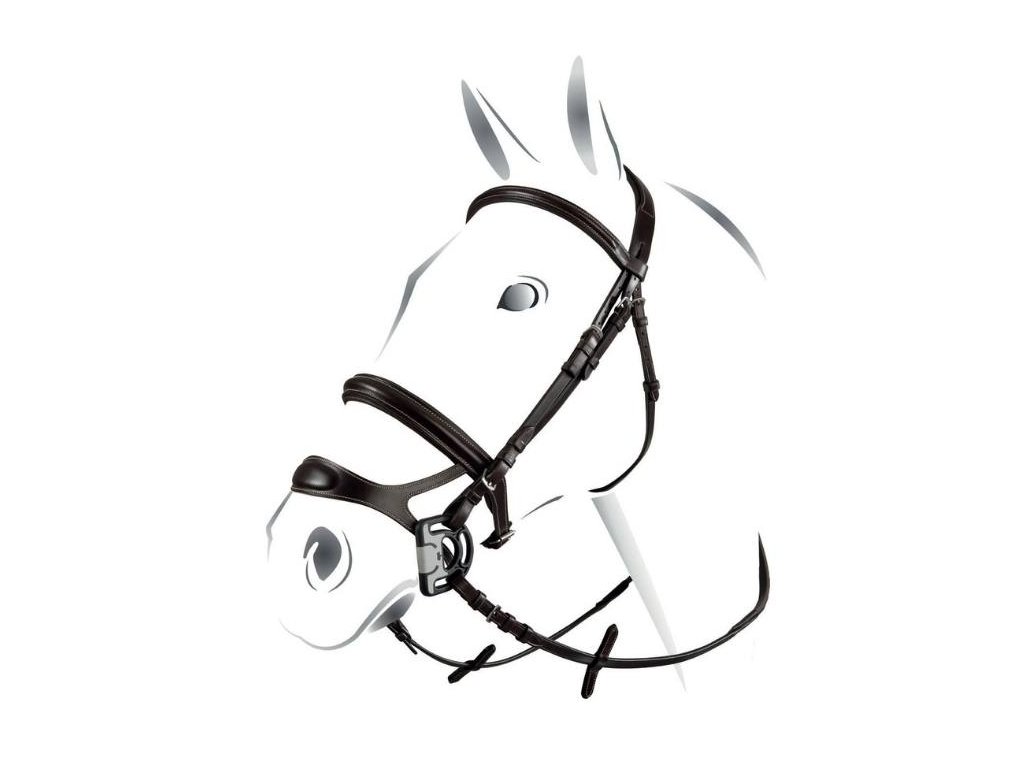 Maximálně výkonná uzdečka v minimalistickém a elegantním provedení. Uzdečka je vybavena dvojitým nánosníkem, který kombinuje účinky anglického a hannoverského nánosníku a tím pomáhá zabránit koni v pohybu čelisti.