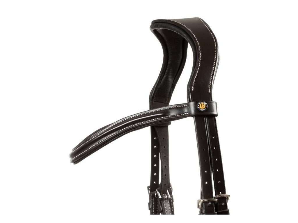 Tato uzdečka je vyrobená z velmi měkké kůže. Anatomický tvar uzdečky rovnoměrně rozkládá tlak na zátylek, čímž zajišťuje maximální pohodlí koně.