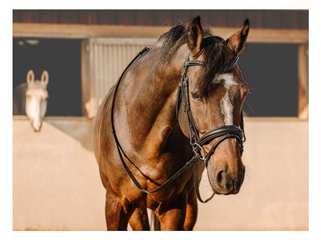Kvalitní, elegantní uzdečka pro koně se švédským nánosníkem. vyrobená z velmi kvalitní a měkké kůže.