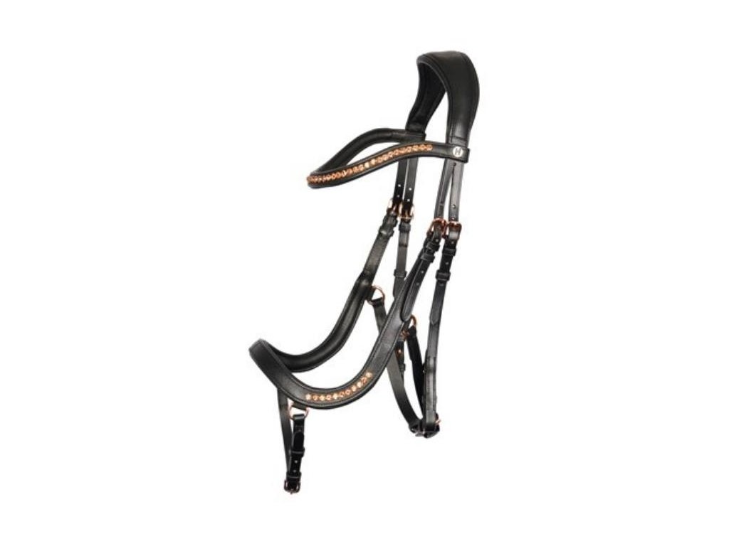 Uzdečka HARRY'S HORSE Rosegold s anatomickým nánosníkem černá COB