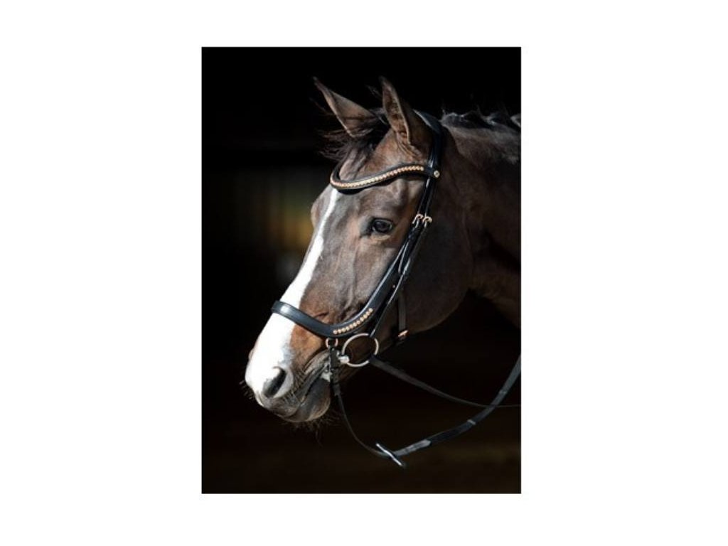 Uzdečka HARRY'S HORSE Rosegold s anatomickým nánosníkem černá PONY