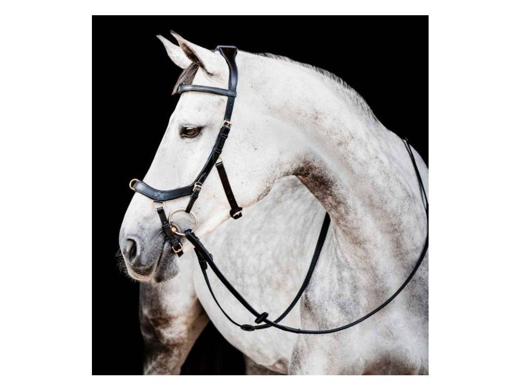 INFO: Uzdečka (s udidlem) je schválena FEI pro použití na závodech (bez přídavných karabinek).
