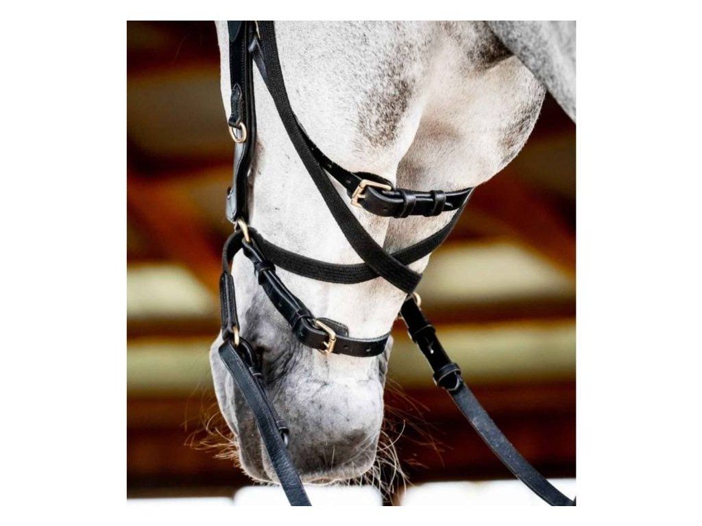 - lze ji využít i jako bezudidlovou uzdečku či díky integrovanému D kroužku na nánosníku jako lonžovací obnosek