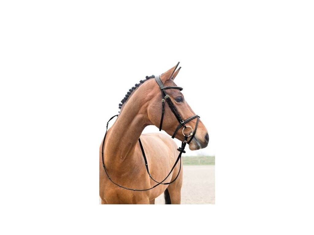 Elegantní uzdečka s krásným prošíváním nabízí polstrovaný nánosník, nátylník i čelenku pro maximální pohodlí koně.