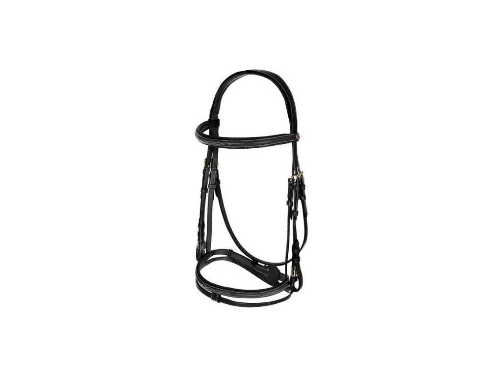 Elegantní uzdečka s krásným prošíváním nabízí polstrovaný nánosník, nátylník i čelenku pro maximální pohodlí koně.