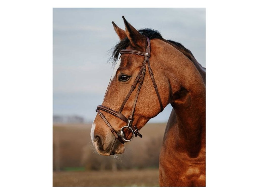 Kvalitní kožená uzdečka pro koně. Lícnice zakončené karabinkou pro snadnou výměnu udila.