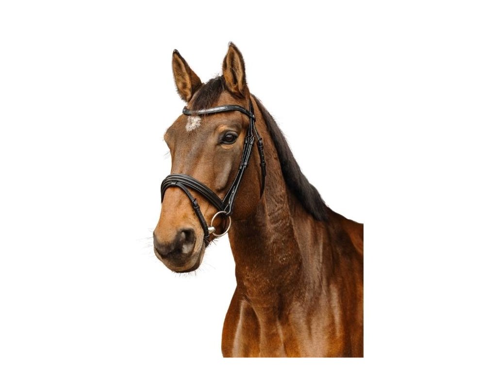 Kvalitní kožená uzdečka pro koně s anglickým kombinovaným nánosníkem.