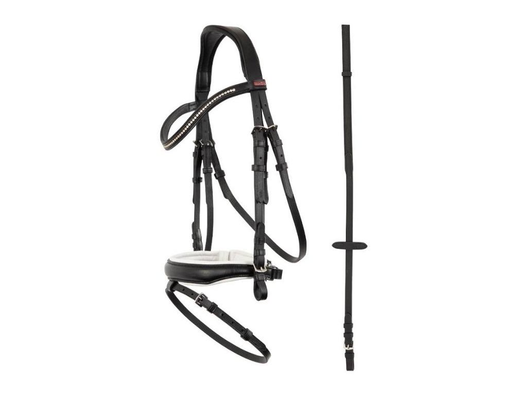 Uzdečka PREMIERE Bastia se švédským nánosníkem černá/bílá PONY