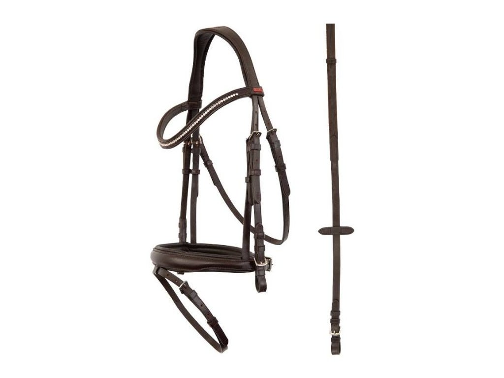 Uzdečka PREMIERE Fontaine s anglickým nánosníkem hnědá FULL