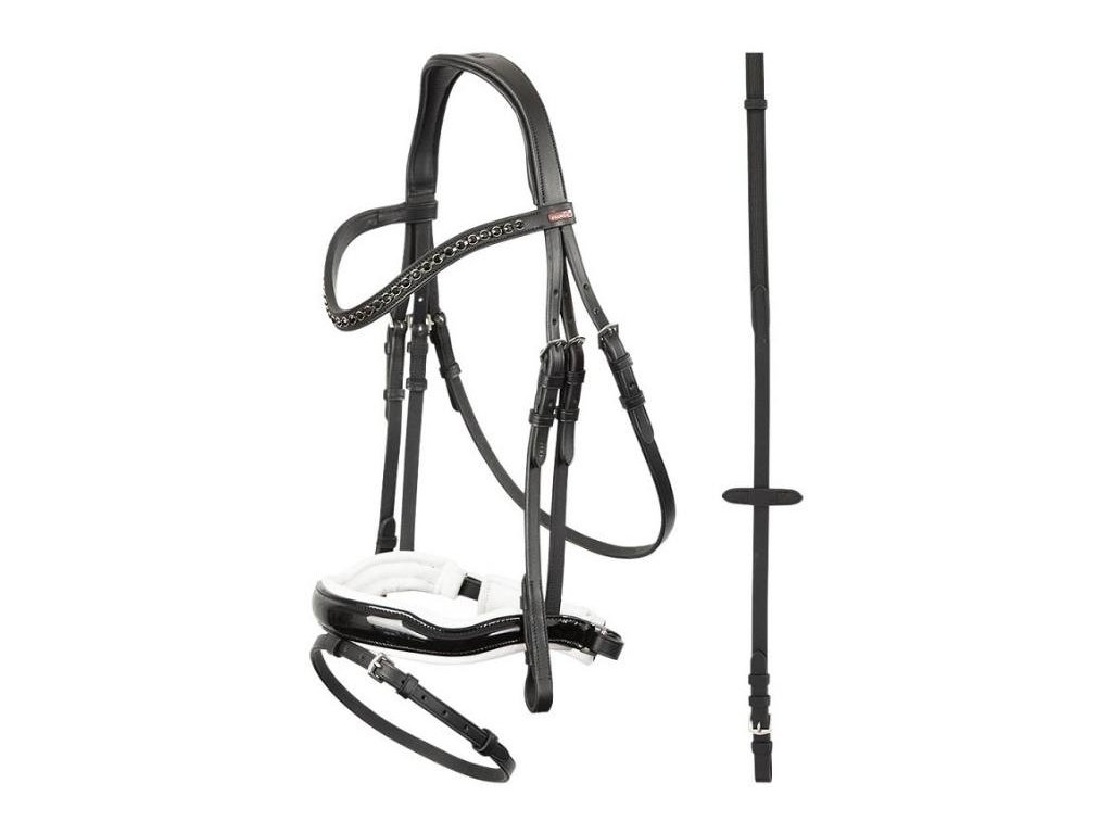 Uzdečka PREMIERE Lorient se švédským nánosníkem černá/bílá PONY