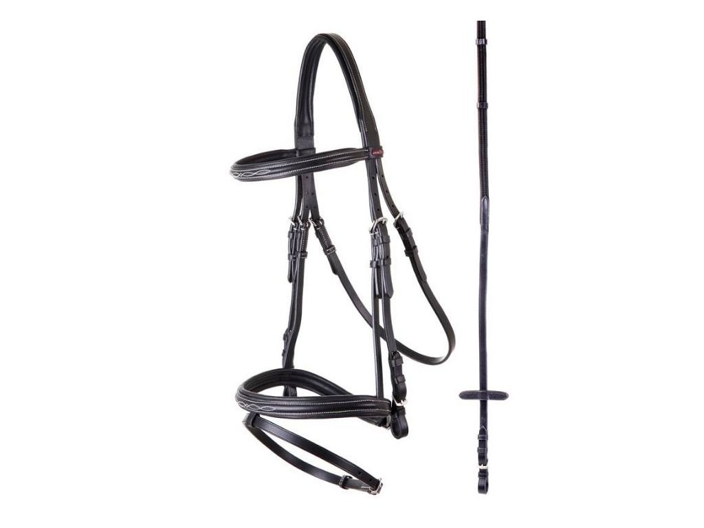 Uzdečka je prošívaná v kontrastní barvě a je kompletně polstrovaná.