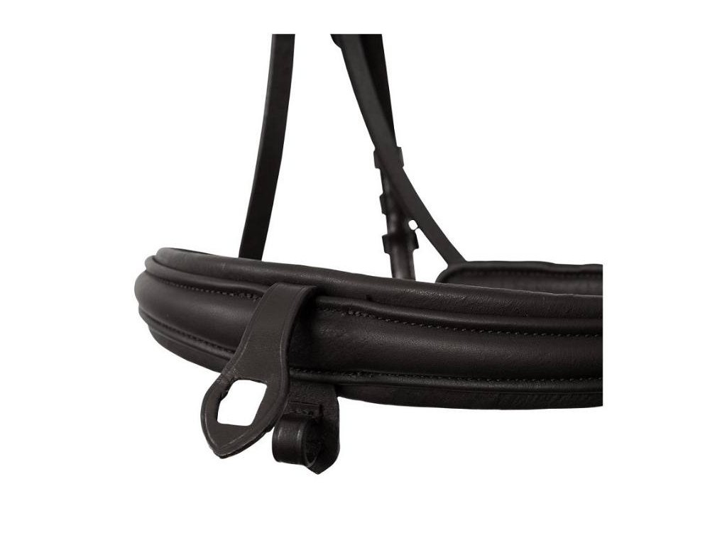 Uzdečka Premiere Narbonne je vyrobena z měkké, pružné kůže. Nátylník a nánosník je anatomicky tvarovaný a měkce podšitý. To zajišťuje dobré přizpůsobení, lepší rozložení tlaku na hlavu koně a velké pohodlí. Nánosník se vyznačuje extra měkkou podšívkou a lze nastavit na obou stranách.