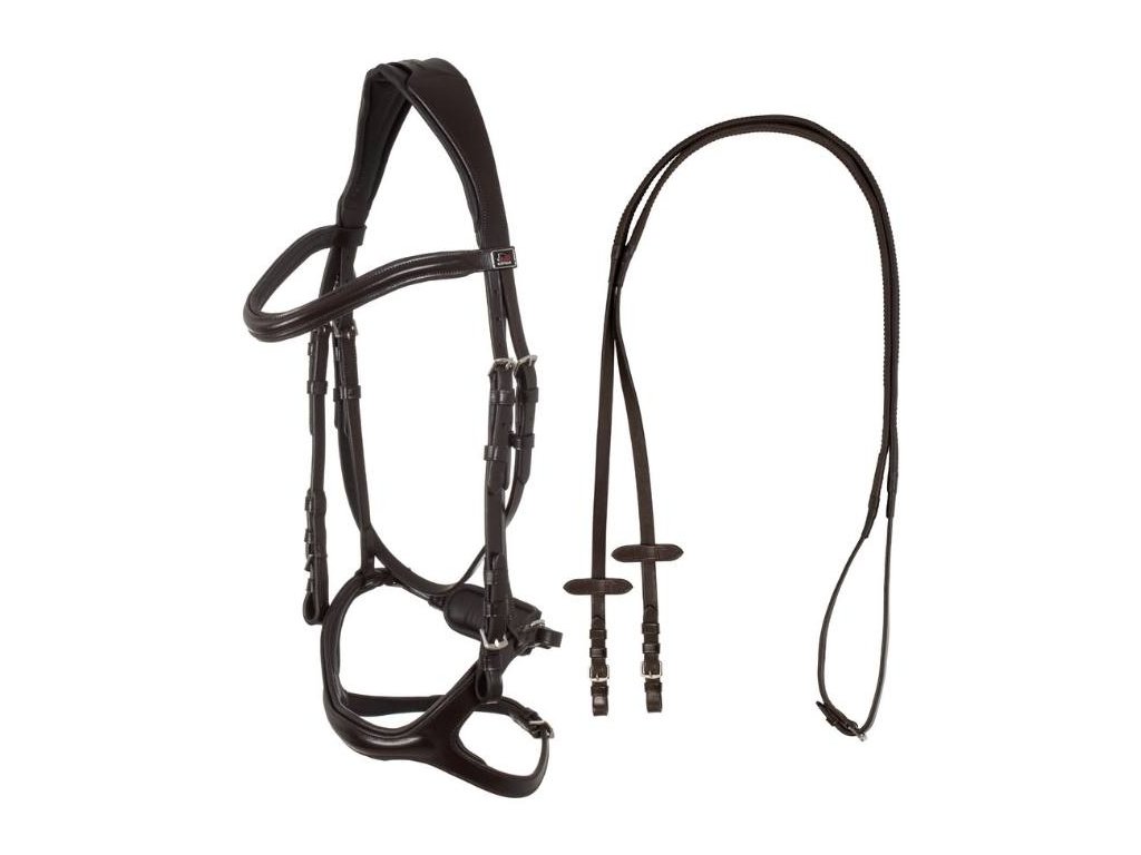 Je měkce polstrovaná pro maximální pohodlí koně. Dodávána včetně otěží.
