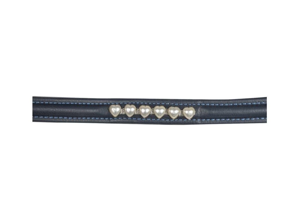 Uzdečka s kombinovaným nánosníkem a rovnou čelenkou, která je zdobena drobnými srdíčky. Nánosník a čelenka jsou podloženy jemným polstrováním.