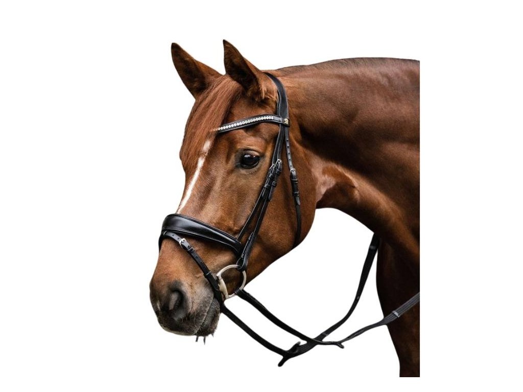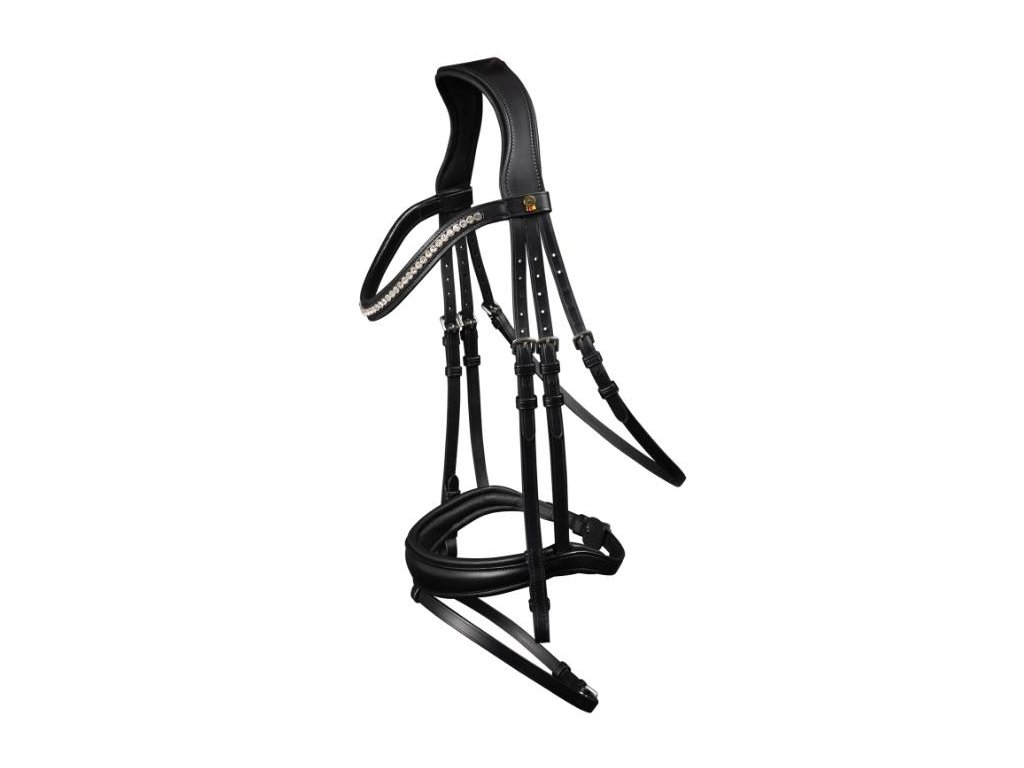 Tato uzdečka má anatomicky tvarovaný nátylník zajišťující dostatečnou volnost uší. Nánosník i čelenka jsou opatřeny měkkým polstrováním. Uzdečka je vybavena zakřivenou čelenkou, která je zdobena kamínky.