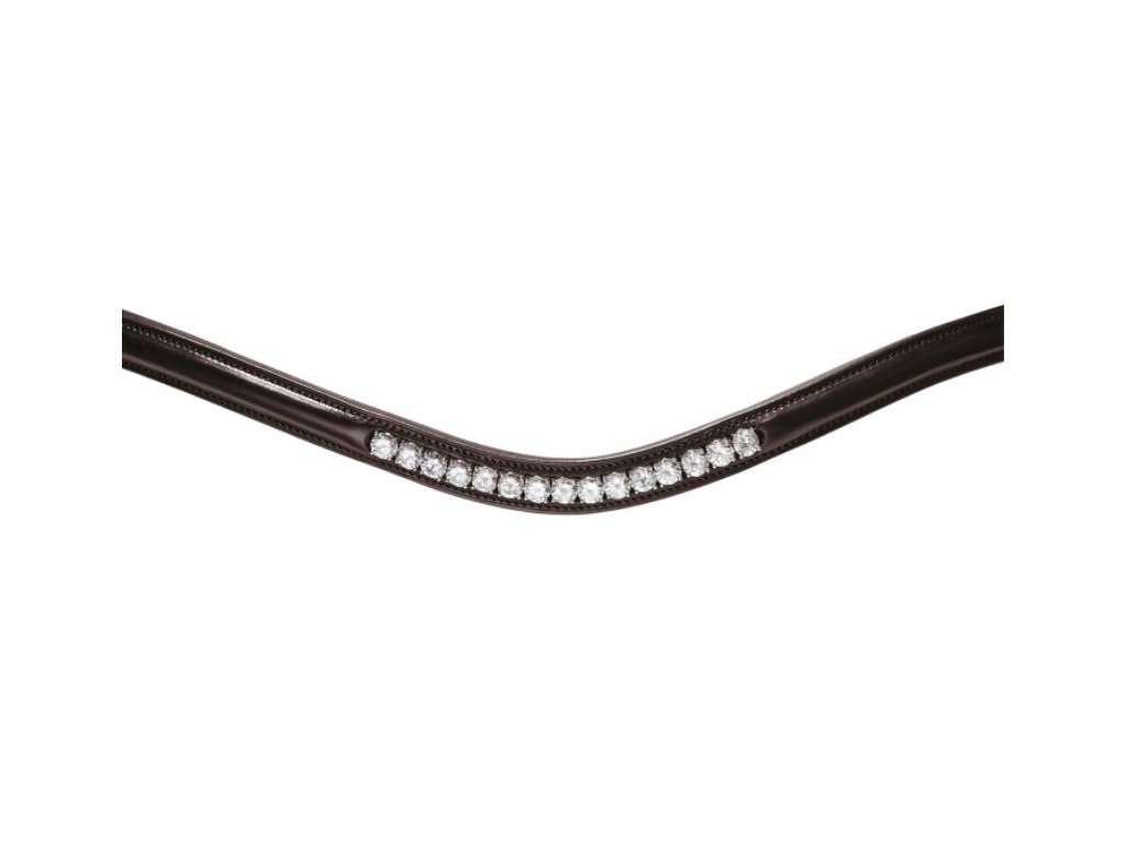 Vysoce kvalitní uzdečka S-line Sensation se zajímavým elegantním střihem. Má anglický kombinovaný nánosník a anatomicky tvarovaný nátylník zajišťující dostatečnou volnost uší. Nánosník s řeminkem je navržen tak, aby zabránil tlaku na nos a tím podpořil volnější dýchání. Podpínací řemínek je odnímatelný. Uzdečka je zdobena zakřivenou čelenkou se stříbrnými kamínky uprostřed