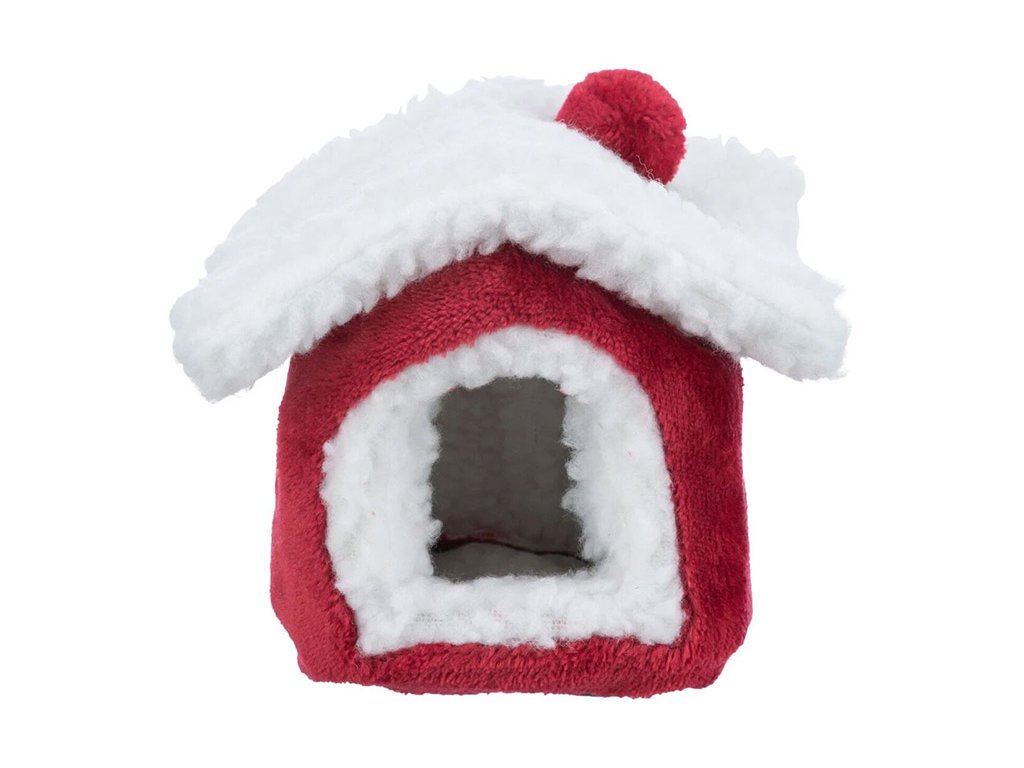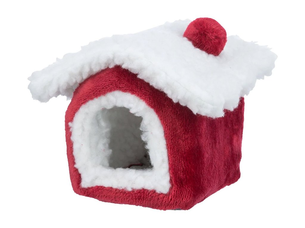 Vánoční domek pro hlodavce TRIXIE Cuddly Cave červený/bílý pro osmáka 23x18x24cm
