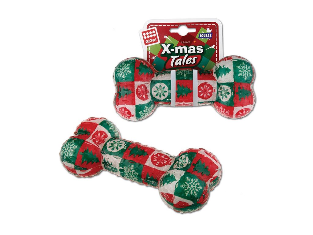 Vánoční hračka GIGWI guma TPR - kost 16x7cm