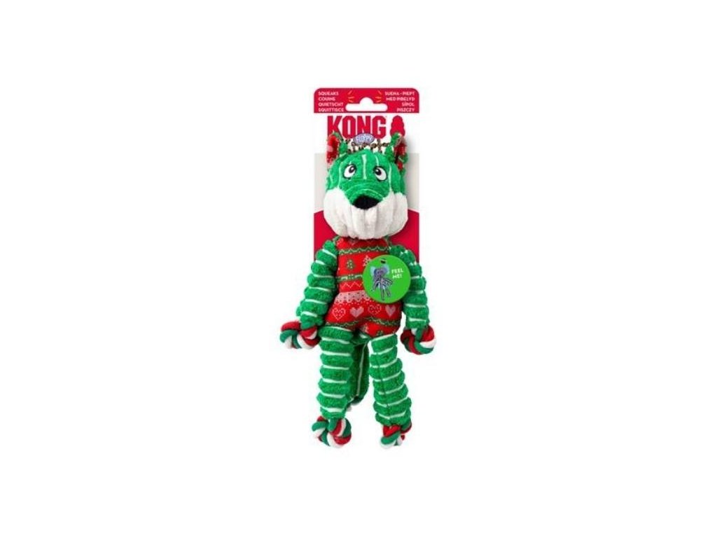 Vánoční hračka KONG Holiday Floppy Knots liška zelená (S/M) 24x21,6cm