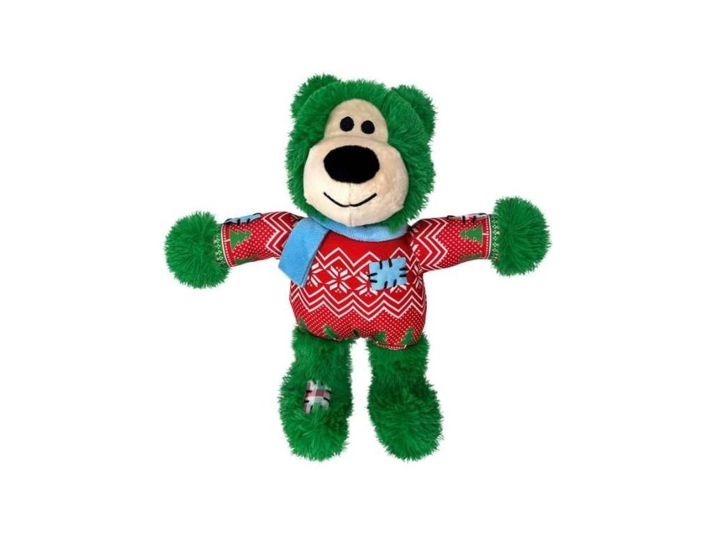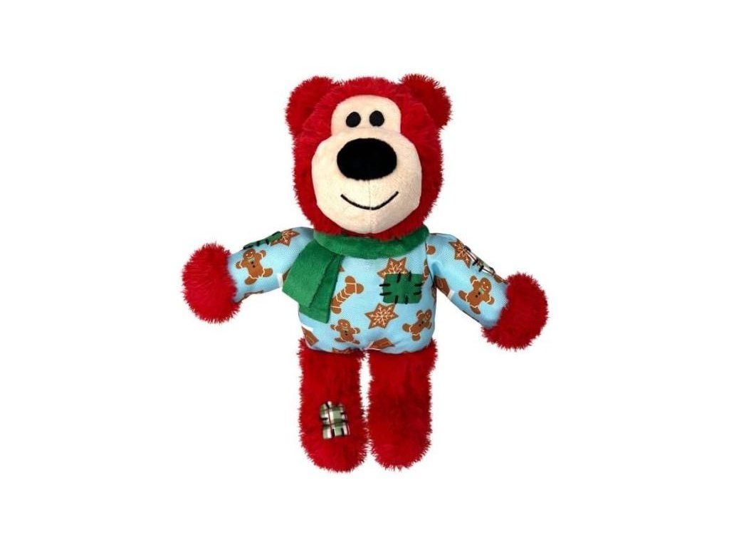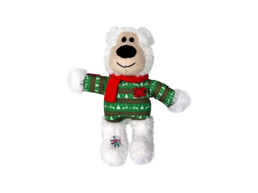 Vánoční hračka KONG medvěd ve svetru (S/M) 24x21,5cm (MIX BAREV)